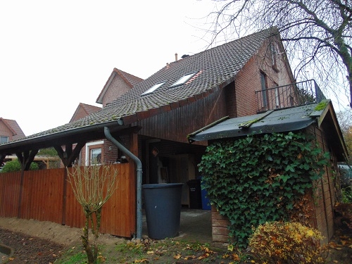 Der pflegeleicht angelegte Garten, eine Terrasse, ein kleines Gartenhaus/Gartenschuppen und ein Carport runden das Angebot ab.
