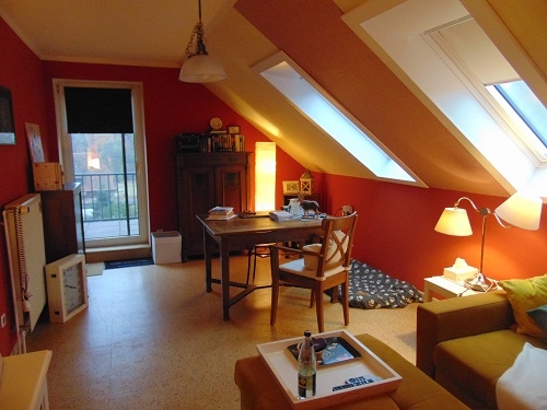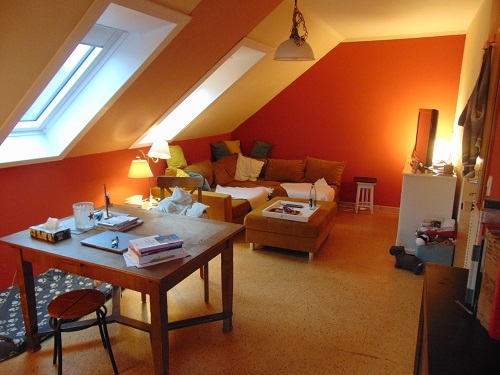 Über eine massive Treppe im Flur, gelangt man in das Dachgeschoss. Das Dachgeschoss besteht aus einem Flur mit Zugang zu jedem Zimmer, einem lichtdurchfluteten Schlafzimmer, einem weiteren Wohnzimmer mit mehreren Fenstern und Zugang auf den angrenzenden Balkon, einem gefliesten geräumigen Badezimmer (mit Wanne, Dusche, Wachbecken, WC und Fenster) sowie einem weiteren Zimmer, das je nach Bedarf als Kinder-, Gäste- oder Arbeitszimmer genutzt werden kann.